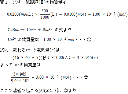 藤田医科大学医学部 化学入試問題 電気分解の計算問題