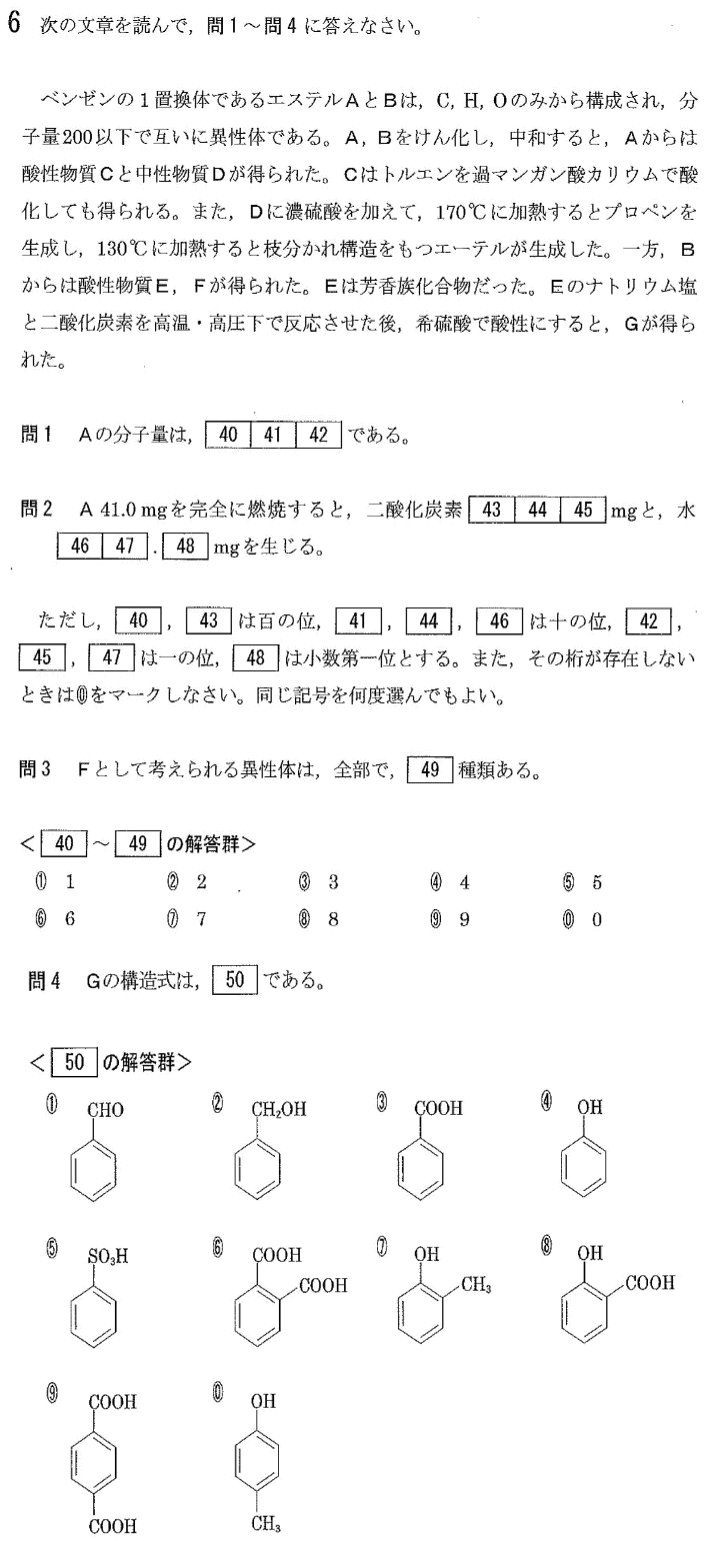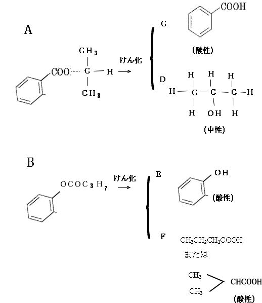 日大医学部の2016年度の化学入試問題[6]有機化学でエステルのけん化の問題を解説します。ここのヒントから反応全体の流れを追い、物質A~Fを特定していきます。問4は覚えましょう。