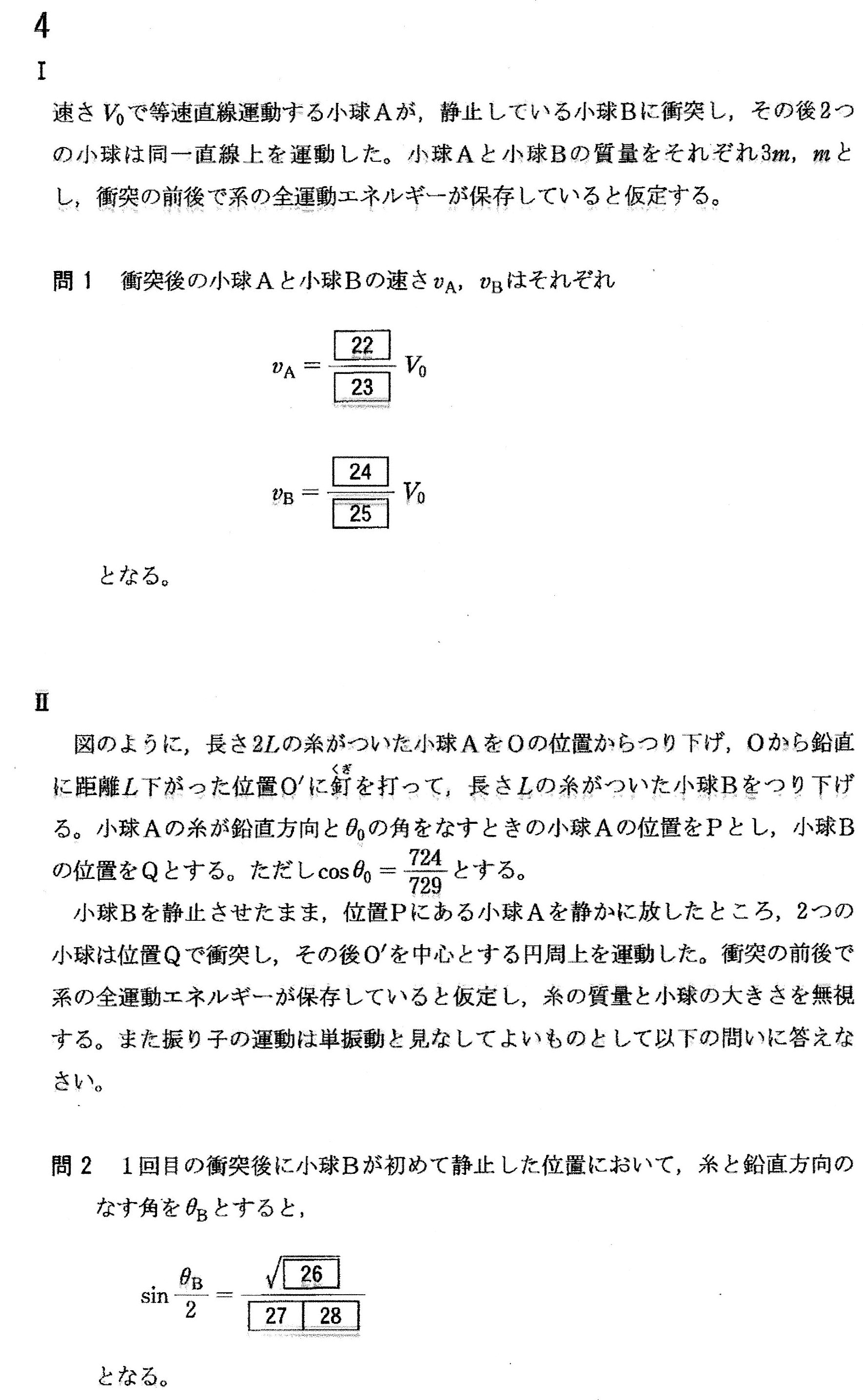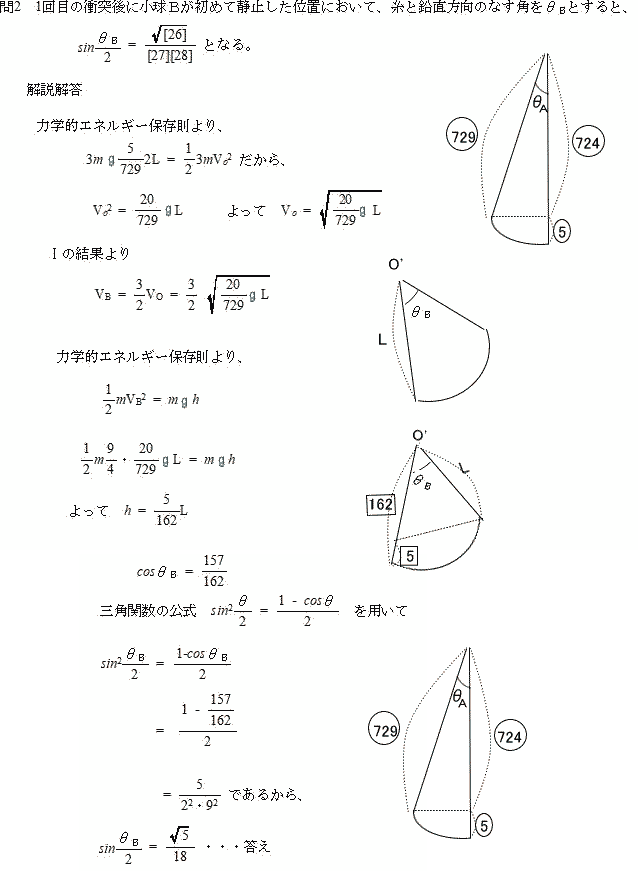 日大医学部の2017年度の物理入試問題[4]単振り子2つの衝突の問題を解説します。力学的エネルギーの公式を変形すると