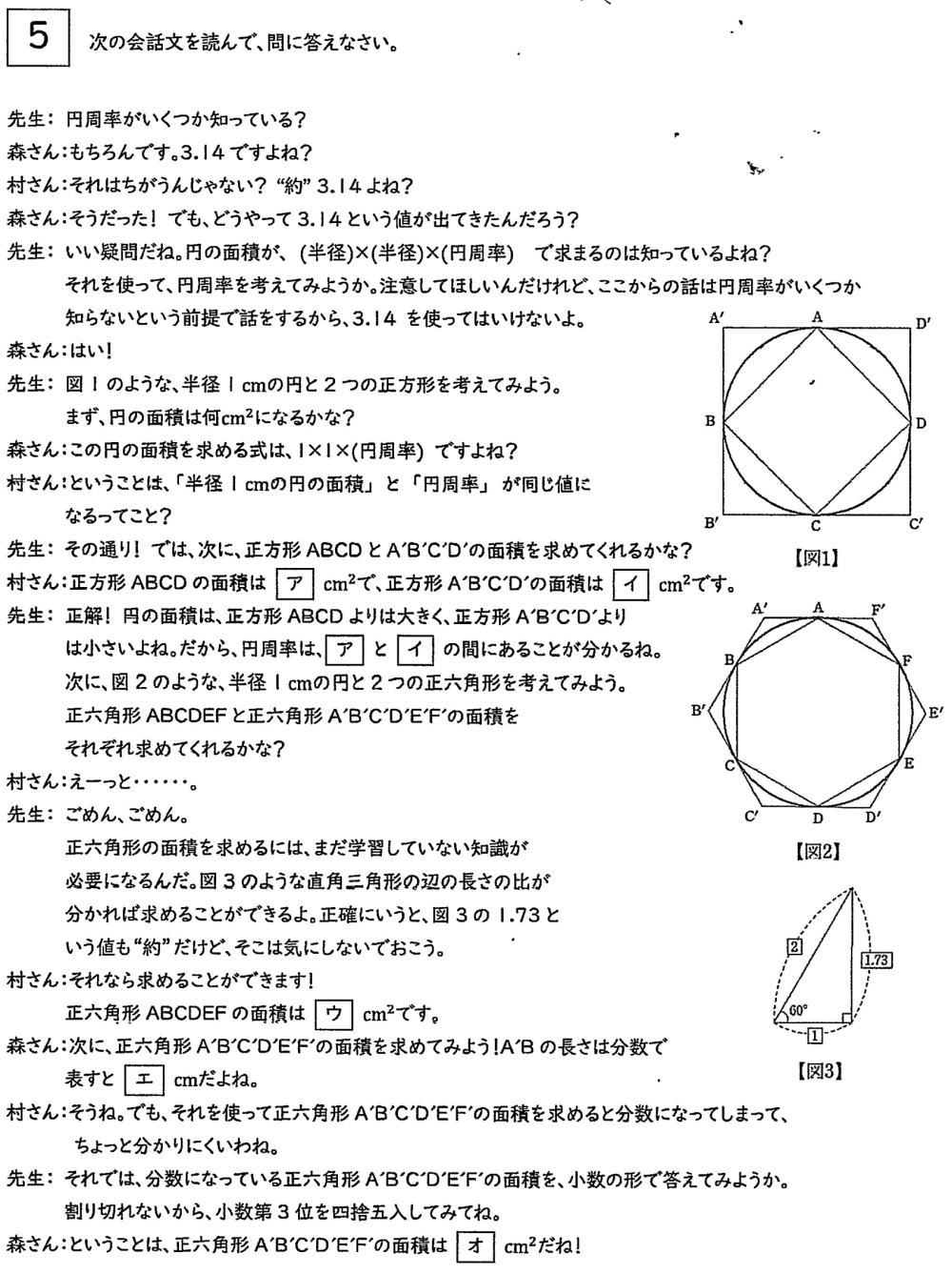 今回は5.円周率に関する会話文を解説します。.