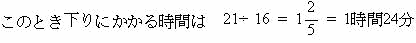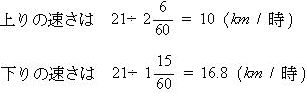 21km離れた川のA地点とB地点を船で往復しました。AからBへ上るときには2時間6分かかり、BからAへ下るときには、川の流れが上りのときより1時間あたり1.4km速くなっていたので、1時間15分ですみました。次の質問に答えなさい。(式や考え方も書きなさい。)