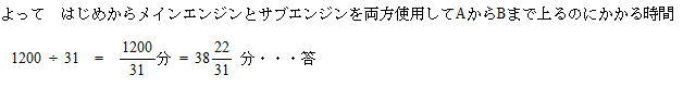 また,サブ エンジンのみでA地点からB地点まで向かえば予定よりも40分おくれて到着します。