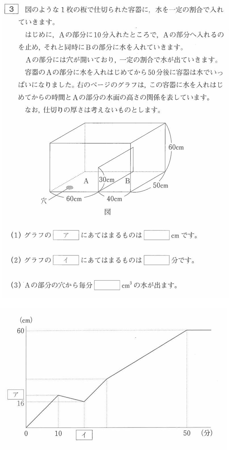 (3) Aの部分の穴から毎分□c㎥の水が出ます。