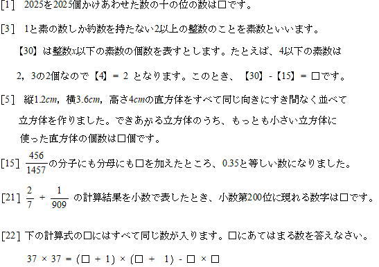 2025年度品川女子学院中等部算数1科目入試は2月1日午後に実施されました。
