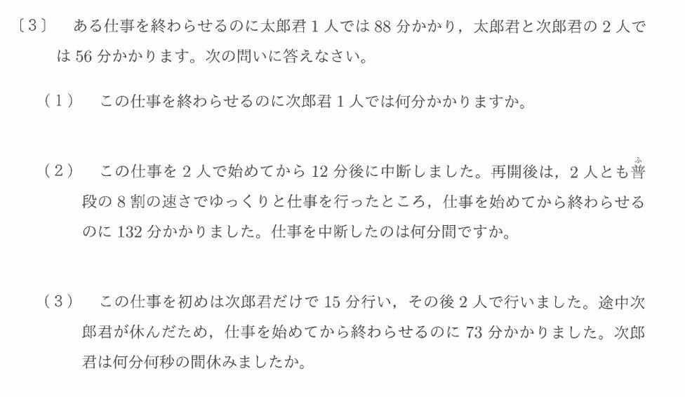 3.仕事算 4.周期算 5.空間図形 が出題されました。