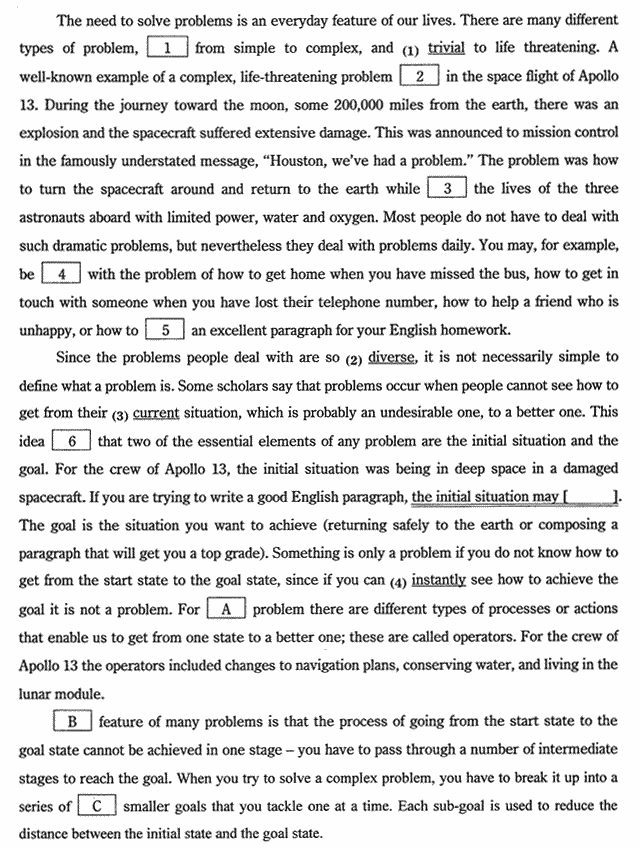 | You may, for example, be (4. faced ) with the problem of how to get home when you have missed the bus, how to get in touch with someone when you have lost their telephone number, how to help a friend sho is unhappy, or how to get home when or how to (5. produce ) an excellent paragraph for your English homework. | ||||